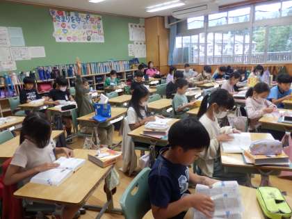 5/26 何秒で引けるかな? 公開日 2023/05/26 更新日 2023/05/26 教育活動 3年生の1時間目は国語の授業でした。国語辞典の使い方について学びました。「かい」「すいか」などのことばを先生が問題として出し、それを何秒で見つけられるかという活動を行っていました。早い子はなんと19秒!語彙を増やすことも読む力の向上には必要です。 いいね(0)