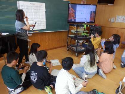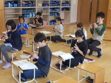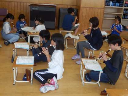 5年生の3時間目は音楽の授業でした。「小さな約束」という曲をリコーダーで練習していました。合わせてみると、みんな揃ってよい音色が響いていました。