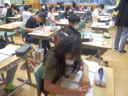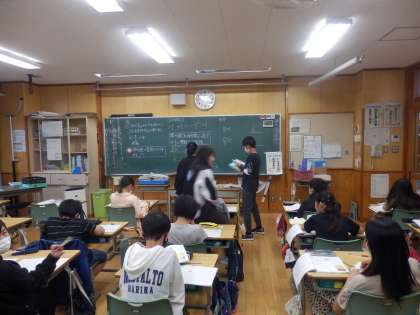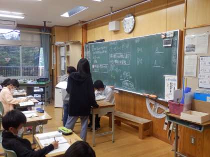 5/29 難問にじっくり取り組む 公開日 2023/05/29 更新日 2023/05/29 教育活動 6年生の1時間目は算数の授業でした。「2と5/6×12」のような帯分数の計算はどうやったらよいか、教科書の問題に取り組んでいました。「難しい!」と言いながらも、各自がじっくりと考え取り組んでいました。解けた子から先生のところへノートを持って行きます。 いいね(0)