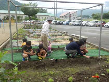 6/13 ヘチマを畑に植えました