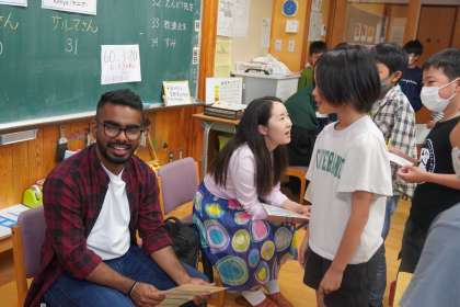 6/13 9日の教育活動3 4年生 国際交流 公開日 2023/06/13 更新日 2023/06/13 教育活動 4年生も国際大学の学生との国際交流を行いました。それぞれの方の母国についてのお話を聞いたり、英語でインタビューなどを行いました。 いいね(0)