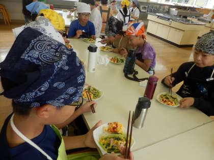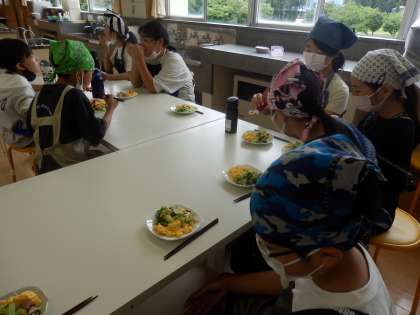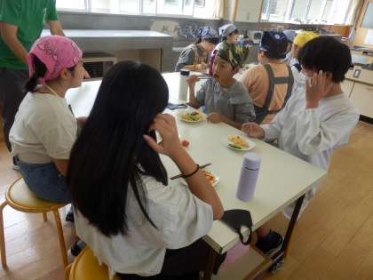 6/15 みんなでおいしくいただきました 公開日 2023/06/15 更新日 2023/06/15 教育活動 6年生は2品が完成したので4時間目に試食会です。味付けもちょうどよく、校長、担任の先生、介助員の先生も招いて、みんなでおいしくいただきました。 いいね(0)