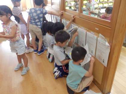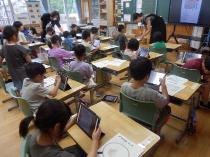7/5 観察日記をiPadで整頓 公開日 2023/07/05 更新日 2023/07/05 教育活動 1年生の1時間目は生活の授業でした。これまで書きためて、廊下のクリアケースに入れていたアサガオの観察日記をまとめて、iPadで写真に撮り、オクリンクというアプリを使って先生に提出していました。アサガオがすくすく育っている様子が一目瞭然です。 いいね(0)