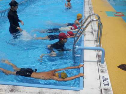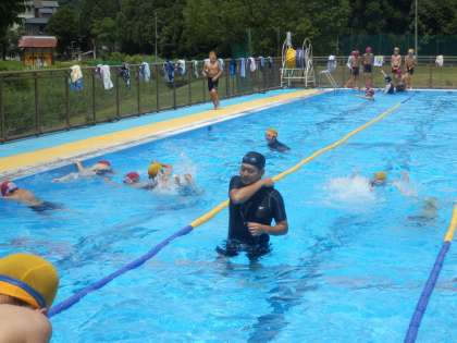 3,4年生は3,4時間目に水泳授業を行いました。一人一人の泳力に応じた3つのグループを編成して行っています。バタ足の練習を中心に行っていました。気温30度を超える暑さの中、気持ちよさそうに泳いでいました。