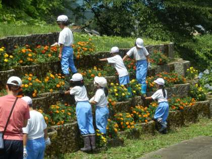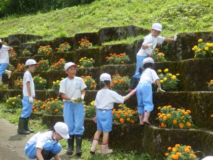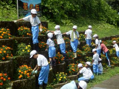 1年生と4年生は2時間目に花の丘活動を行いました。暑い中でしたので、短時間集中で頑張りました。雑草が生い茂ったポットがきれいになりました。