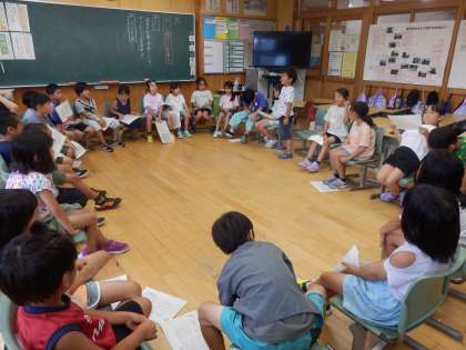 7/11 子ども達の手でクラス会議 公開日 2023/07/11 更新日 2023/07/11 教育活動 2年生の4時間目は学活の授業でした。車座になってクラス会議を行っていました。最初は「夏休みに頑張りたいこと」を1人1つずつ言っていきました。どうやら「プール」が多いようです。そして、「お楽しみ会で何をするか」について話し合いました。会議の進行も子ども達で行っていました。 いいね(0)