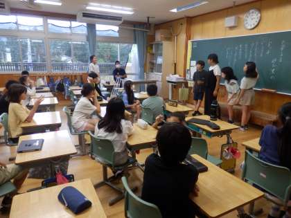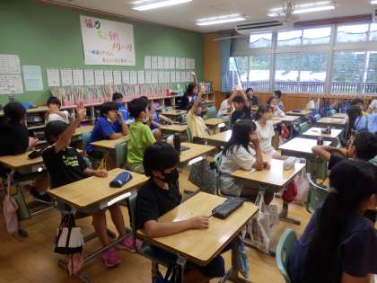 5年生の6時間目は学活の授業でした。1学期最後のお楽しみ会についての話し合いを行っていました。進行、記録は子ども達自身で行います。候補がいくつか上がった後、「いいと思う」「やめた方がいいと思う」という意見をきちんと理由をつけて述べていました。話し合い活動での大事なポイントです。