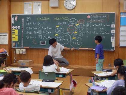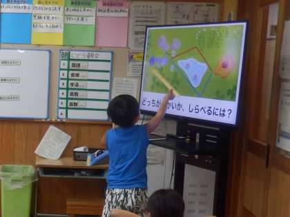 7/13 どっちが近いか 公開日 2023/07/13 更新日 2023/07/13 教育活動 2年生の5時間目は算数の授業でした。写真のように、アリがクッキーにたどり着くには水たまりを避けて通る赤いコースと青いコースの2つあります。どちらが近いか調べるにはどうすればよいか学習しました。隣の人と話し合いながら、たくさんの意見が出されました。 いいね(0)
