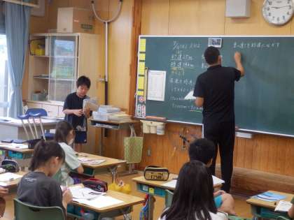 7/18 どっちが速い? 公開日 2023/07/18 更新日 2023/07/18 教育活動 5年生の1時間目は数学の授業でした。「秒速25mの台風と時速54kmの自動車ではどちらが速いか比べていました。「両方を時速にする」と「両方を秒速にする」の2通りの意見が出され、それぞれ計算してどちらがやりやすいか考えました。 いいね(0)