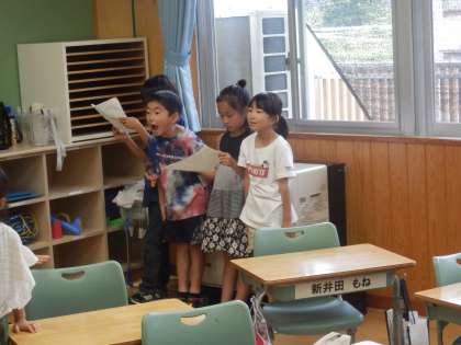 2年生は2時間目にお楽しみ会の準備をしていました。司会進行のリハーサルをしたり、担当するゲームの最終打ち合わせをしたりしていました。今日の4時間目が本番です。先生に頼らずに全部、自分たちで考え、話し合って行っていました。