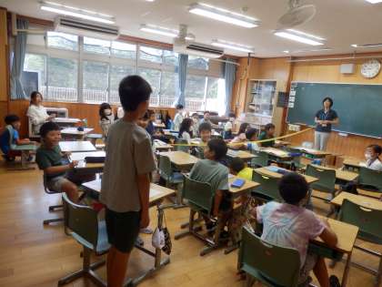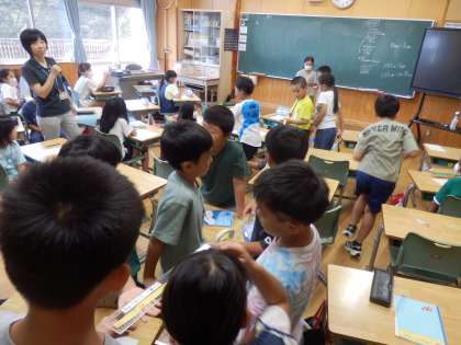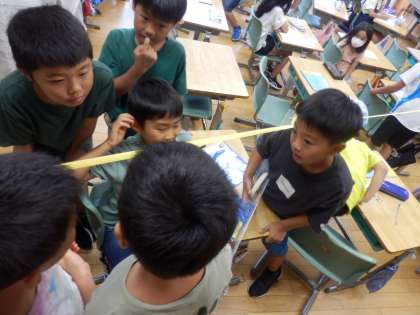 8/29 先生との距離は? 公開日 2023/08/29 更新日 2023/08/29 教育活動 3年生の1時間目は算数の授業でした。長さについての学習です。まずは、先生と一番後ろの席のことの距離を測るためにみんなで意見を出し合いました。紙テープで2人をつなぎ、協力しながら定規で長さを測っていきました。 いいね(0)
