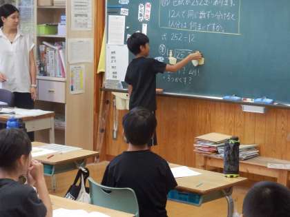 8/30 252÷12はどうやる? 公開日 2023/08/30 更新日 2023/08/30 教育活動 4年生の1時間目は算数の授業でした。252÷12の計算を、これまでやっていた「指で隠す」というやり方で計算するには「どこを隠せばいい?」という迷いが子どもたちから出されました。2通りの意見が出たので、それを基に各自で計算をして、確かめました。悩みながらも真剣に考える姿がたくさんありました。 いいね(0)
