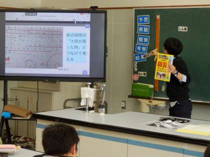 10/11 浸食・運搬・堆積と土砂災害 公開日 2023/10/11 更新日 2023/10/11 教育活動 5年生の5時間目は理科の授業でした。まずは昨日の授業で子どもたちが書いた振り返りを紹介していました。振り返りからミズノもつ力「浸食、運搬、堆積」と土砂災害の関係について学びました。 いいね(0)
