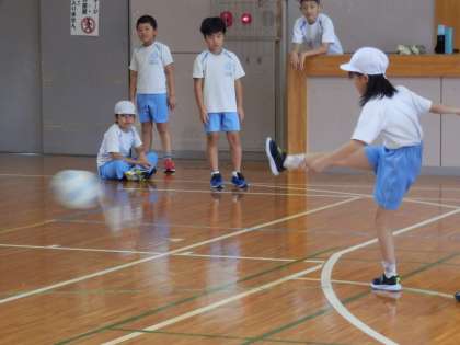 10/11 シュート練習 公開日 2023/10/11 更新日 2023/10/11 教育活動 3年生の5時間目は体育の授業でした。サッカーの学習です。パスを受けてのシュート練習を行っていました。なかなか鋭いシュートを打つ子が何人もいました。 いいね(0)