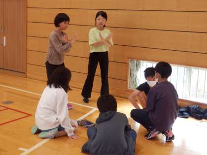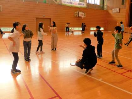 第1体育館での練習の様子です。チームごとで協力して振り付けを考えています。