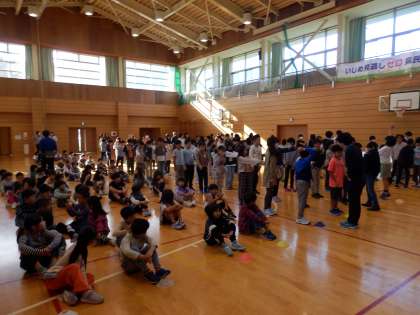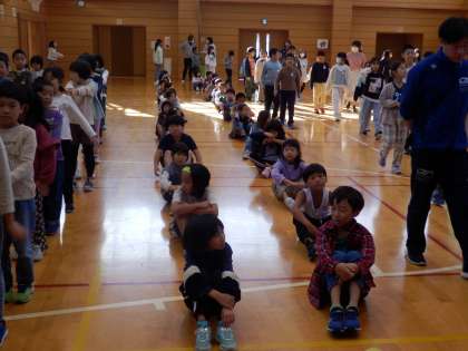今日の朝会で整列が一番早かったのはは2年生でした。その次は1年生です。低学年、やりました!