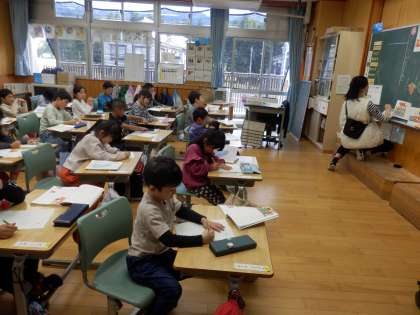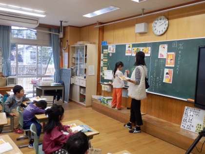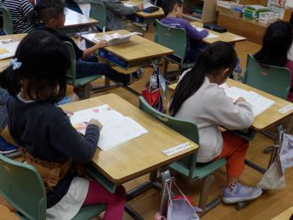 10/12 具体的に読み取る 公開日 2023/10/12 更新日 2023/10/12 教育活動 1年生の5時間目は国語の授業でした。「サラダで元気」という物語を読んで、どんなことが書かれているのか内容を読み取っていました。「どんな野菜をどんなふうに切っているのか」や「動物たちがおすすめした野菜とそれを入れるとどんなよいことがあるのか」などについて読み取ることができました。1年生なので教科書を読むときには、読み飛ばしがないように、指で字を追いながら読んでいます。 いいね(0)