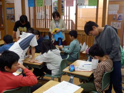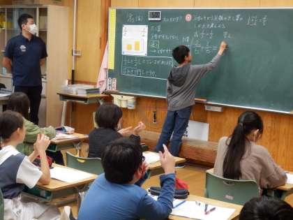 10/13 分母が違う分数の足し算は? 公開日 2023/10/13 更新日 2023/10/13 教育活動 5年生の1時間目は算数の授業でした。市学習指導センターの指導主事が参観しての公開授業でした。「1/3+1/2」のように分母が違う分数の足し算をどうやって計算するのか教え合いながら学びました。通分、約分の理解はもちろんですが、前に学習した最大公倍数の理解も必要です。 いいね(0)