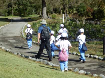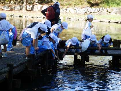 1年生は坂戸山から銭渕公園へ移動しました。大きな岩の上に登ったり、池の鯉を見たりと楽しんでいました。学習ボランティアの方と手をつないで歩く姿がかわいらしかったです。