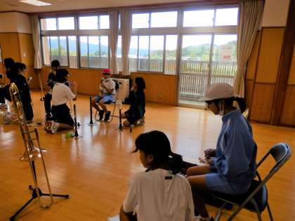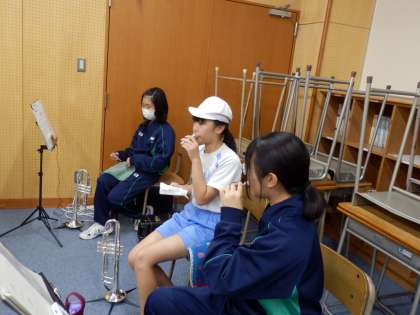 前半の吹奏楽部と陸上部の様子です。吹奏楽部は2カ所に分かれて活動していました。