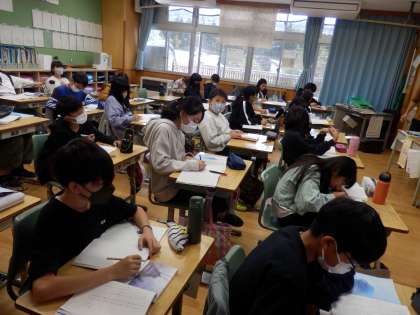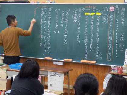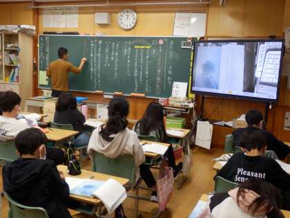6年生の4時間目は国語の授業でした。「海のいのち」という物語の山場にあたる段落を読んで、主人公の気持ちの変化を読み取っていました。文章で書かれていることを根拠に考えることが大切な力です。