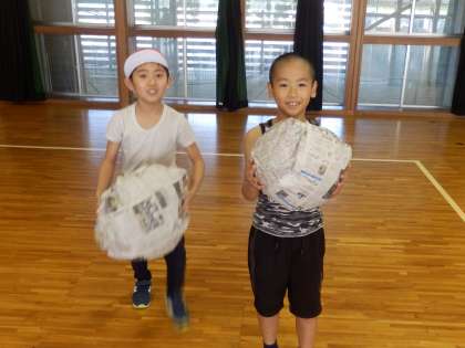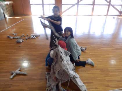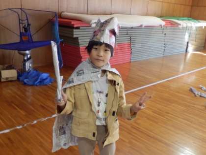 10/17 新聞紙でアートづくり 公開日 2023/10/17 更新日 2023/10/17 教育活動 2年生の5時間目は図工の授業でした。武道場で行っていました。新聞紙を使って思い思いのものを作っていました。冠とマントと剣を作ってヒーローに返信したり、テントを作ったり、大きなボールを作ったりしていました。 いいね(0)