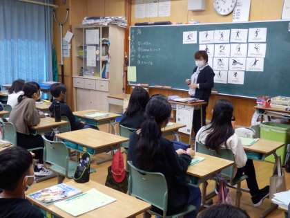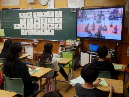 10/18 オリンピック・パラリンピックの種目 公開日 2023/10/18 更新日 2023/10/18 国際科 6年生の2時間目は国際科の授業でした。まず、ハロウィンにまつわる語句の英語の言い方を確認しました。その後、今日から始まる新しい単元に入りました。オリンピック・パラリンピックがテーマになっていますので、ピクトグラムと一緒に競技名を英語で確認しました。そして、シッティング・バレーや車椅子バスケのし合いの様子を動画で視聴しました。 いいね(0)