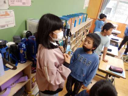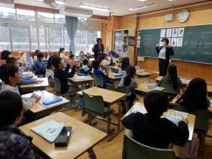 3年生の3時間目は国際科の授業でした。ハロウィンにまつわることばの英語での言い方やハロウィンでおなじみのフレーズ「トリックオアトリート」などについて学びました。その後、ジャンケンをして勝った人が負けた人に「トリックオアトリート」と言い、会話をつなげていきます。