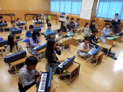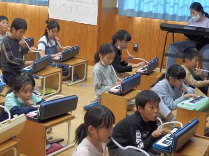 10/19 リコーダーと鍵盤ハーモニカで 公開日 2023/10/19 更新日 2023/10/19 教育活動 3年生の5時間目は音楽の授業でした。鍵盤ハーモニカを演奏する練習をしていました。(すいません、曲名が分かりませんでした) 上手にできたので、二つに分かれて、一方はリコーダーの演奏をすることになりました。 いいね(0)