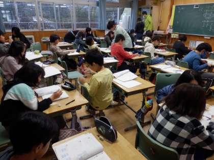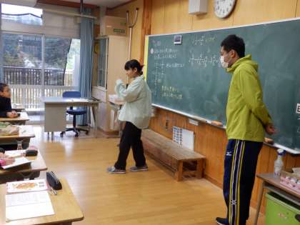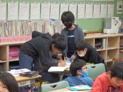 10/20 分母が違う帯分数の計算 公開日 2023/10/20 更新日 2023/10/20 教育活動 5年生の1時間目は算数の授業でした。「2と1/2 − 1と1/6」などの分母が違う帯分数の計算をどうやったらいいか考え、問題に取り組んでいました。教科書の問題を3問解き終わったら、先生に丸付けをしてもらい、その後はミニティーチャーとして他の人に教えてあげます。 いいね(0)