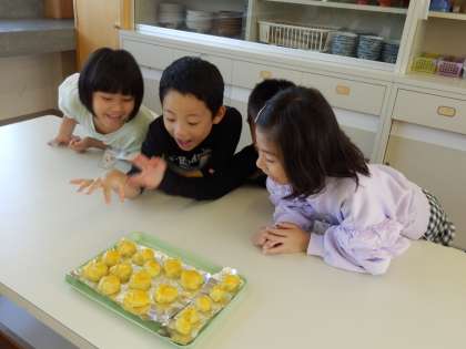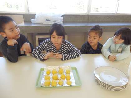 10/20 完成!スイートポテト 公開日 2023/10/20 更新日 2023/10/20 教育活動 1年生のスイートポテトが完成しました。オーブンで焼く間、待ち遠しそうに扉の窓からのぞいたり、カウントダウンしたりしていました。オーブンの数が限られていますので、早く焼き上がった班の子達は、しばしおあづけです。 いいね(0)