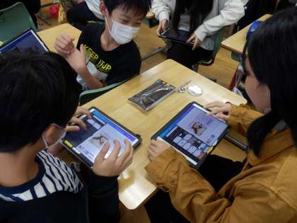 10/20 オリジナルの名刺づくり 公開日 2023/10/20 更新日 2023/10/20 教育活動 6年生の4時間目は総合の授業でした。総合支援学校6年生との交流会に向けて、オリジナルの名刺作りをしていました。iPadでデザインを考えたり、自分の顔写真を貼り付けたりしていました。中には、学校ホームページのQRコードを貼り付けている子もいました。なるほど! いいね(0)
