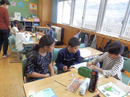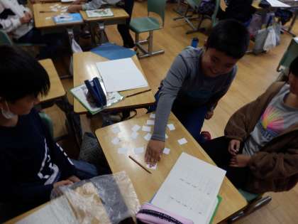 10/20 誰が大きいかゲーム 公開日 2023/10/20 更新日 2023/10/20 教育活動 4年生の4時間目は算数の授業でした。「0.□□□」の小数点第1,2,3位に入る数字を、裏返した数字カードから引いて当てはめていきます。班の中で一番大きい数字になった人が勝ちです。 いいね(0)