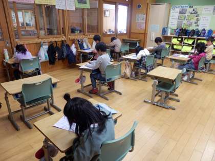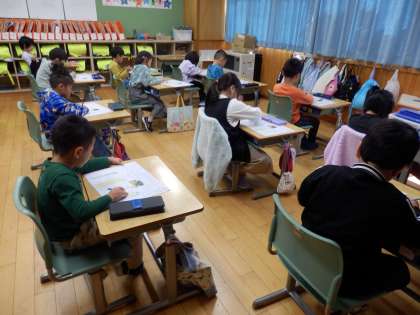 10/23 「サラダで元気」のテスト 公開日 2023/10/23 更新日 2023/10/23 教育活動 1年生の2時間目は国語の授業でした。「サラダで元気」の単元のまとめテストをしていました。テストが終わった人から、iPadでドリル学習をしたり』自由帳にお絵かきをしたりしていました。 いいね(0)