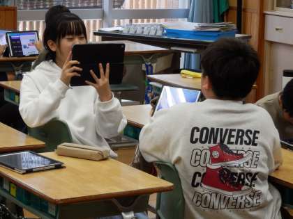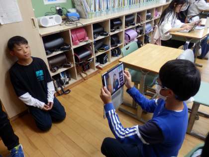 10/23 名刺づくり 公開日 2023/10/23 更新日 2023/10/23 教育活動 6年生の5時間目は総合の授業でした。総合支援学校との交流会に向けて、名刺づくりの続きです。自分の顔写真を入れるために、お互いのiPadで写真を取り合っていました。 いいね(0)