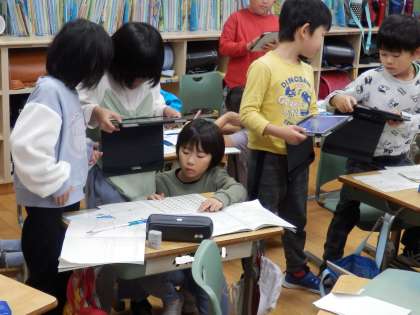 10/24 3の段のきまり 公開日 2023/10/24 更新日 2023/10/24 教育活動 2年生の1時間目は算数の授業でした。九九の3の段のきまりを考えていました。1にんで考えたり、友達と話し合ったりしながら、見つけたらiPadで先生に送信します。いろいろな見方や考え方が出ていました。 いいね(0)