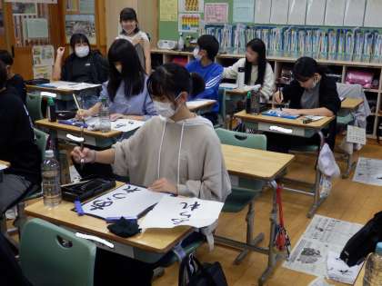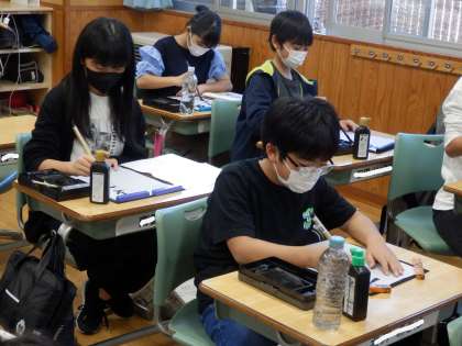 10/24 あられ 公開日 2023/10/24 更新日 2023/10/24 教育活動 6年生の5時間目は書写の授業でした。「あられ」という字の清書です。バランスよく書くのが難しかったようです。 いいね(0)