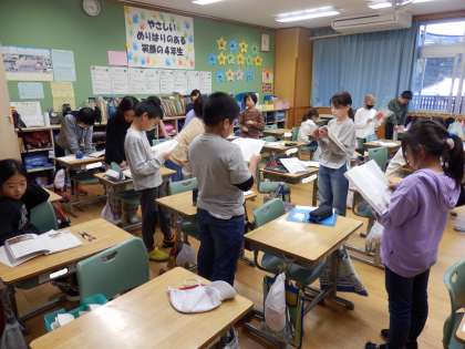 10/24 意味段落の内容 公開日 2023/10/24 更新日 2023/10/24 教育活動 4年生の6時間目は国語の授業でした。「暮らしの中の和と洋」という評論文の各意味段落の内容を確認し、そのつながりを確認していました。全体の内容を確認したら、恒例の「サバイバル音読」です。1人ずつ順番に丸読みをしていきますが、読み飛ばしや読み間違いをしたら座っていきます。最後まで残った2人には「席替え優先チケット」のプレゼントです。 いいね(0)