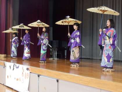 10/24 歌舞伎クラブの練習1 公開日 2023/10/24 更新日 2023/10/24 教育活動 放課後、歌舞伎クラブがステージ練習を行いました。本番どおりに衣装や下駄などを身に付けての練習です。講師の方お二人と着物の着付けの方お二人から来ていただきました。 いいね(0)