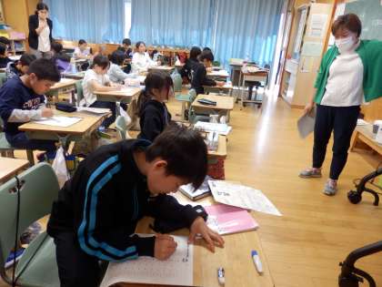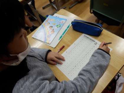 10/25 アルファベットの大文字と小文字 公開日 2023/10/25 更新日 2023/10/25 国際科 4年生の3時間目は国際科の授業でした。まずはALTの先生が言う単語の発音を聞いて、その単語にどんなアルファベットが入っているかを考えます。その後、アルファベットの小文字を復習した後、プリント学習で大文字と小文字を線で結んで確認しました。 いいね(0)