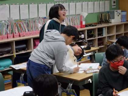 12/7 どこを底辺、どこを高さにするか 公開日 2023/12/07 更新日 2023/12/07 教育活動 5年生の4時間目は算数の授業でした。三角形の面積を求める問題に取り組んでいました。黒板の三角形が見えますでしょうか。形は違っても、底辺と高さが同じであれば、面積は同じになることを学習しました。三角形のどこを底辺、どこを高さとして考えるかが大切になります。 いいね(0)
