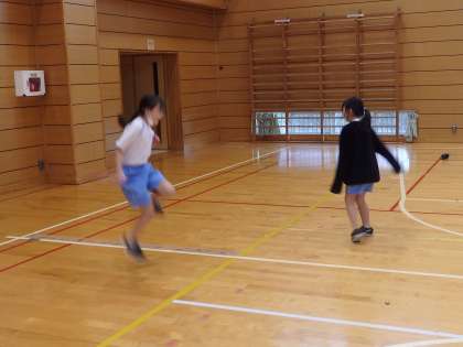 4年生の体育。こちらは縄跳びグループの様子です。前回しや後ろ回しを練習したり、1人の子が縄跳びを伸ばしてクルクル回り、それをみんなで跳んだり、走りながら縄跳びをして鬼ごっこをしたりしていました。(残念ながら、鬼ごっこは写真がぶれてしまい、載せられません)