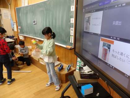12/8 動くおもちゃ作り 公開日 2023/12/08 更新日 2023/12/08 教育活動 2年生の1時間目は図工の授業でした。動くおもちゃ作りの続きです。完成した子どもたちは、おもちゃの紹介や「よくできたところ」「もっとこうすればよかった」などの振り返りをiPadのオクリンクで作成して、提出していました。 いいね(0)