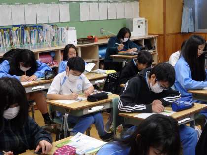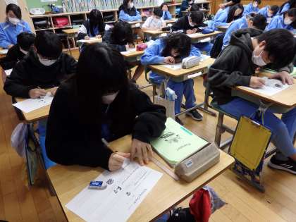 12/8 単元のまとめテスト 公開日 2023/12/08 更新日 2023/12/08 国際科 6年生の1時間目は国際科の授業でした。単元のまとめテストを行っていました。「将来の夢」についてスピーチをした単元です。テストの後は、「あなたは何になりたい?」「私はパイロットになりたい」などの英文を四線上に正しく書く練習を行いました。 いいね(0)