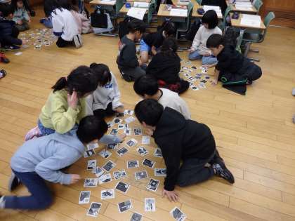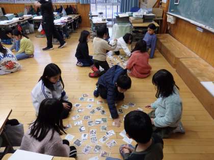 1/18 いろはかるたをやってみよう 公開日 2024/01/18 更新日 2024/01/18 教育活動 2年生の5時間目は国語の授業でした。教科書の中で「いろはかるた」が紹介されていましたので、みんなでやってみることに。「やったーっ!」と大喜びする子どもたちでした。4つのグループに分かれて、元気いっぱいカルタを楽しみました。 いいね(0)