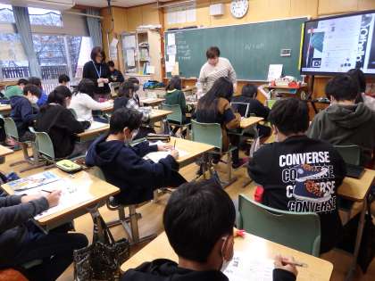 1/19 発表練習 公開日 2024/01/19 更新日 2024/01/19 国際科 6年生の1時間目は国際科の授業でした。まずはALTの先生と「wh」の発音とWhatを使った文を書く学習をしました。その後、「妄想の修学旅行」の発表練習をしました。自分でつくったスライドを相手に見せながら発表する練習です。何回か練習したら、先生を相手に模擬発表をしていました。 いいね(0)
