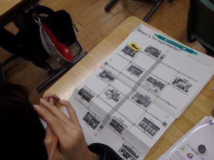 1/19 道案内の仕方 公開日 2024/01/19 更新日 2024/01/19 国際科 今日は前回の内容からレベルアップして、「Turn left/right at the second corner.(2番目の角を左/右に曲がって) It's on your left/right.(左側/右側にあります)」という表現を使って活動していました。最後まで聞かないと、正しい道を進めません。 いいね(0)