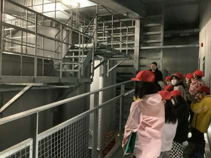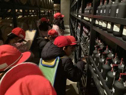 3年生の校外学習の様子です。南魚沼の名産品を生み出す企業の工場に行ってきました。1つは魚沼の里(雪室)の見学です。