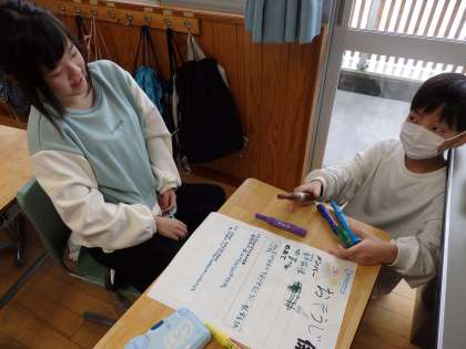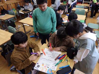1/22 係のポスターづくり 公開日 2024/01/22 更新日 2024/01/22 教育活動 4年生は、先日決定した係のポスターを作っていました。係ごとに集まって分担やめあてなどを話し合いながら作ります。係の内容や名前も4年生らしくユニークです。「マッスル係」という係があったので、何かと思ったら「体育の時の準備体操の号令係」でした。 いいね(0)