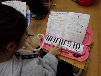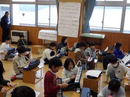 1/23 旋律を作ろう 公開日 2024/01/23 更新日 2024/01/23 教育活動 4年生の1時間目は音楽の授業でした。リズムだけが示されている楽譜に、「ミ・ソ・ラ・ド・レ」の5つ音を使って、自分で旋律を考える活動をしていました。鍵盤ハーモニカを使って、熱心に取り組んでいました。ちょっとした作曲家ですね。 いいね(0)